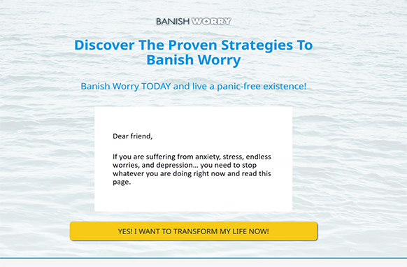 Discover The Proven Strategies To Banish Worry. Banish Worry TODAY and live a panic-free existence! If you are suffering from anxiety, stress, endless worries, and depression you need to stop whatever you are doing right now and read this page.
