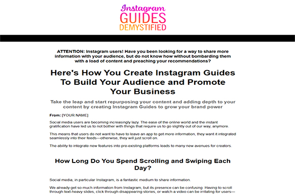 We already get so much information from Instagram, but its presence can be confusing. Having to scroll through text-heavy slides, click through disappearing stories, or watch a video can be irritating for users—what they need is a streamlined blog post to provide them with all the information, just like an Instagram Guide.